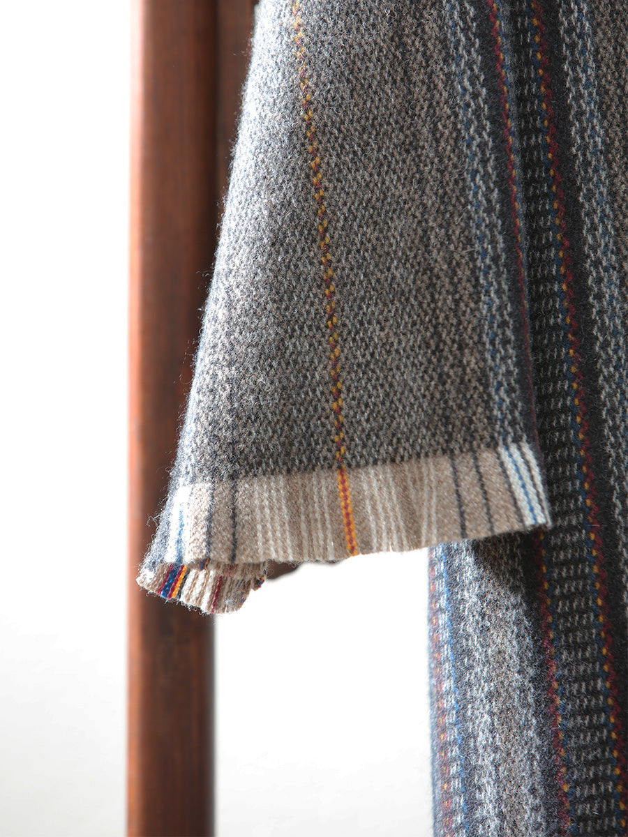 Indulge in ultimate comfort with our exquisite cashmere and yak wool blend robe, adorned with a classic mandarin collar and stylish fringe accents.