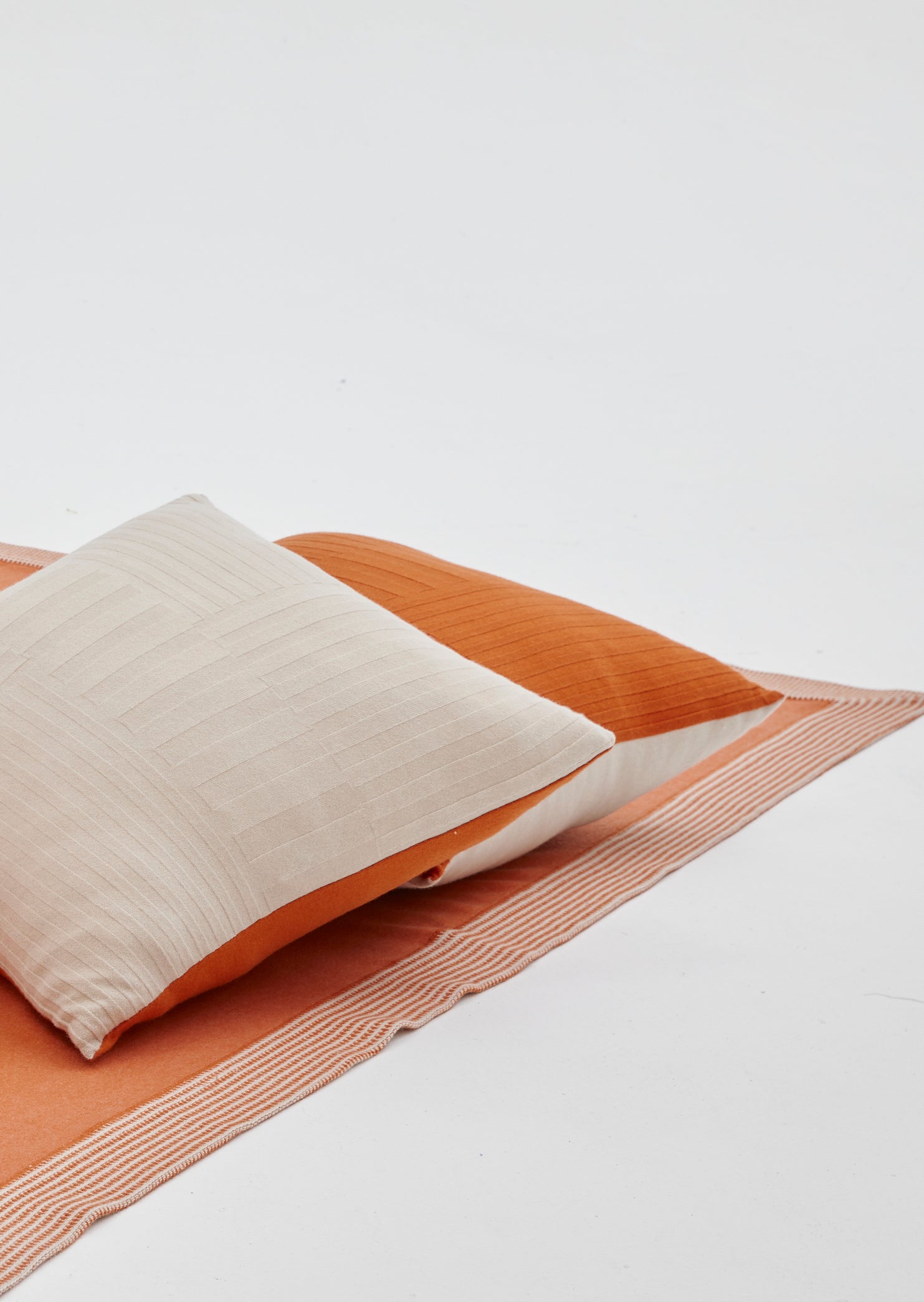 A soft pure cashmere square cushion. Relatively light weight, natural and warm color, a perfect fit for domestic life and travel.