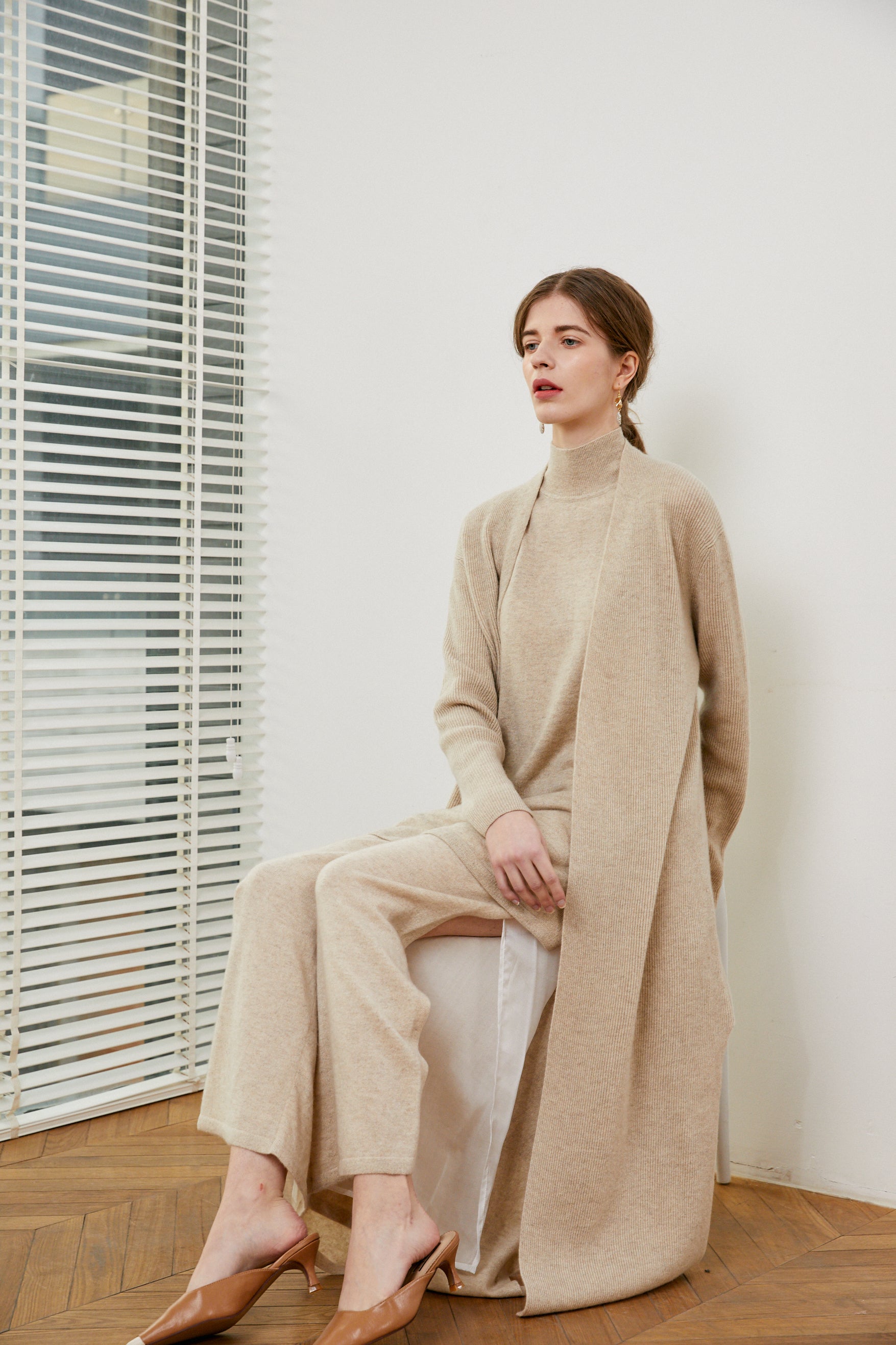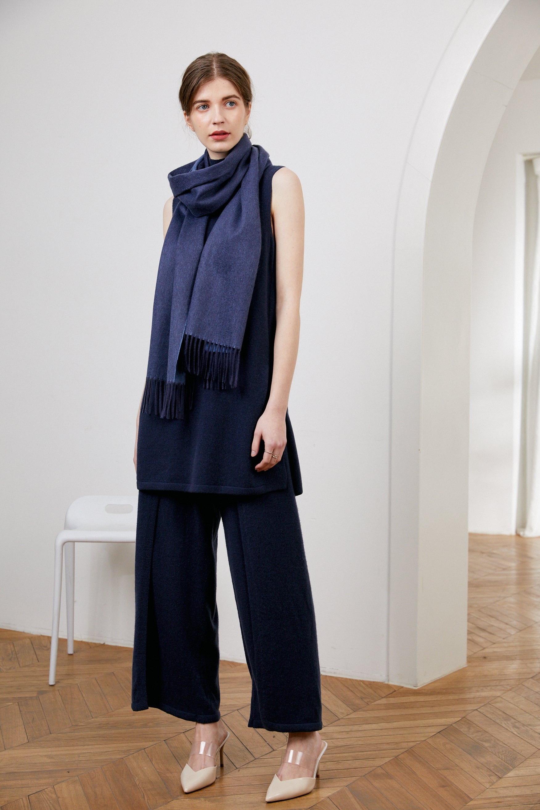 This piece comes in two color: Natural beige and Mongolia blue. The beige comes from the authentical color of cashmere, naturally un-dyed.