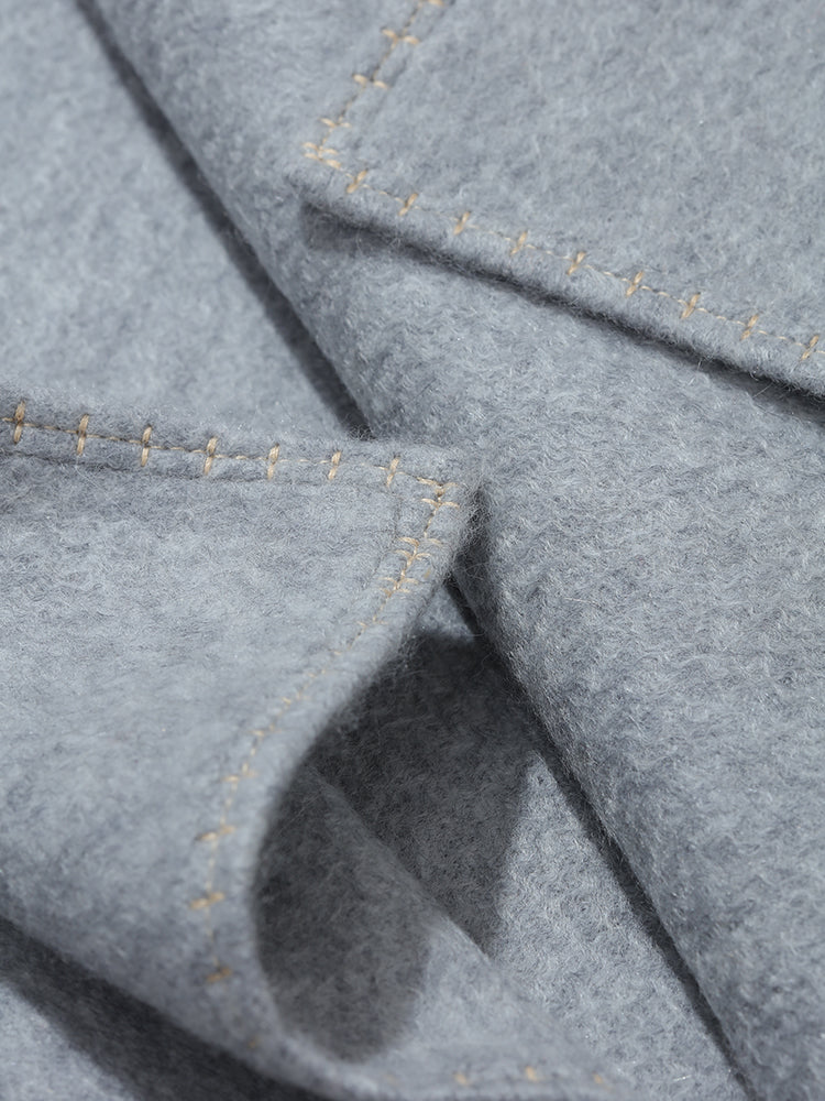 Elegantly designed in medium gray with hemmed embroidered trim, this piece epitomizes understated sophistication. Its versatile design ensures warmth and style wherever it goes.