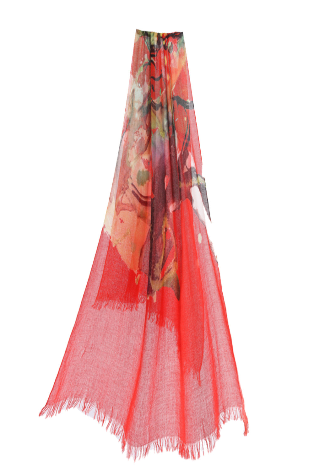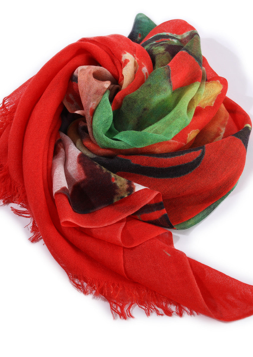 This scarf creation by French artist Francesca Brenda Mitterrand presents "Man and Woman”,an abstract painting expressing the love between the two; the artist's creativity is brought to life via digital printing technology.