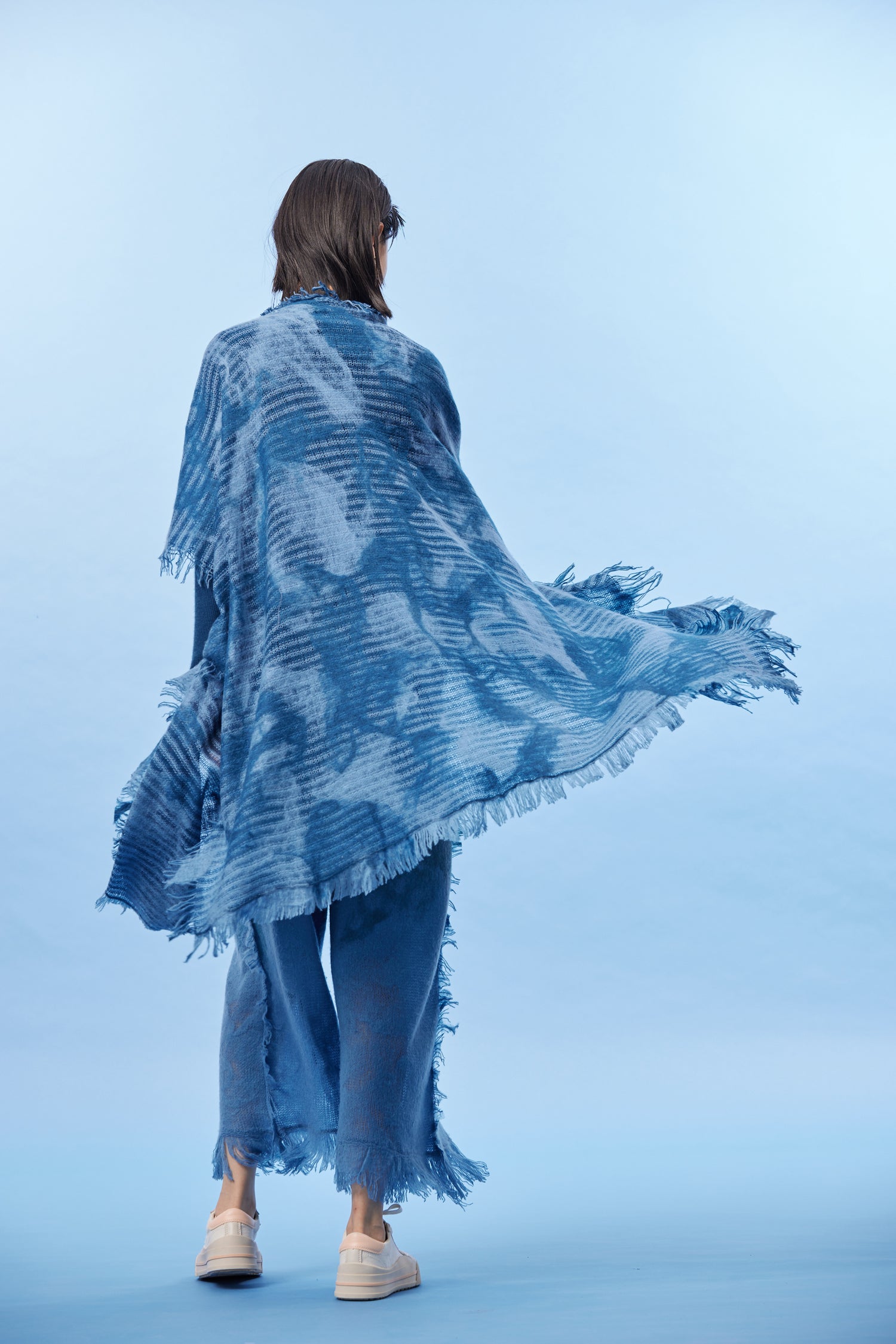 Unique traditional Mongolian handcrafted artistic felting cloak-type shawl, 100% cashmere, knit base.