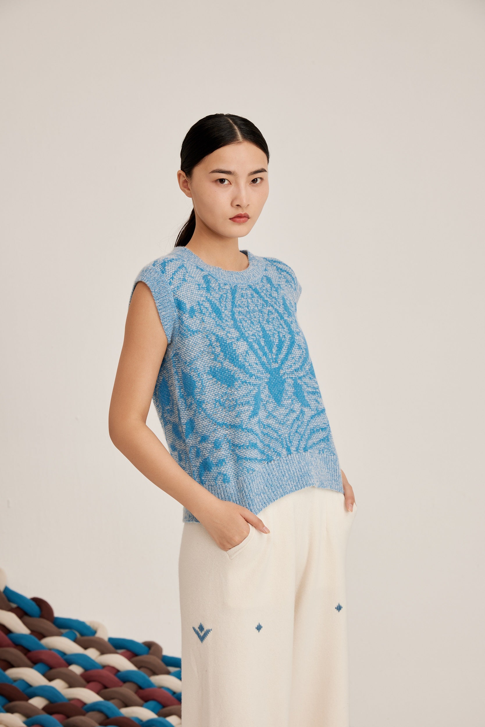 Drop shoulder with jacquard pattern, relaxed and elegant