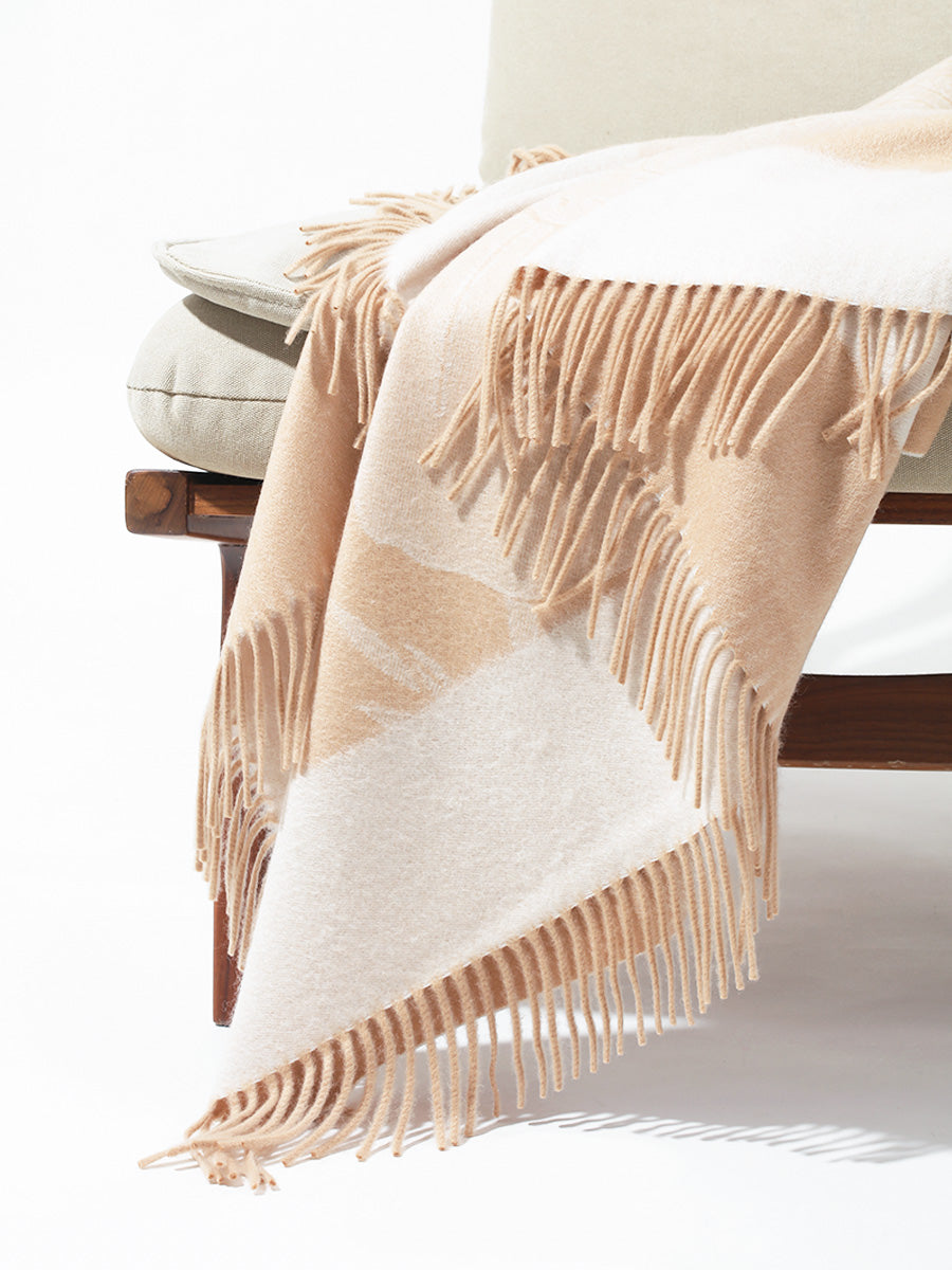 Inspired by Tibetan culture, this cashmere throw showcases a beautifully detailed jacquard-woven floral pattern.