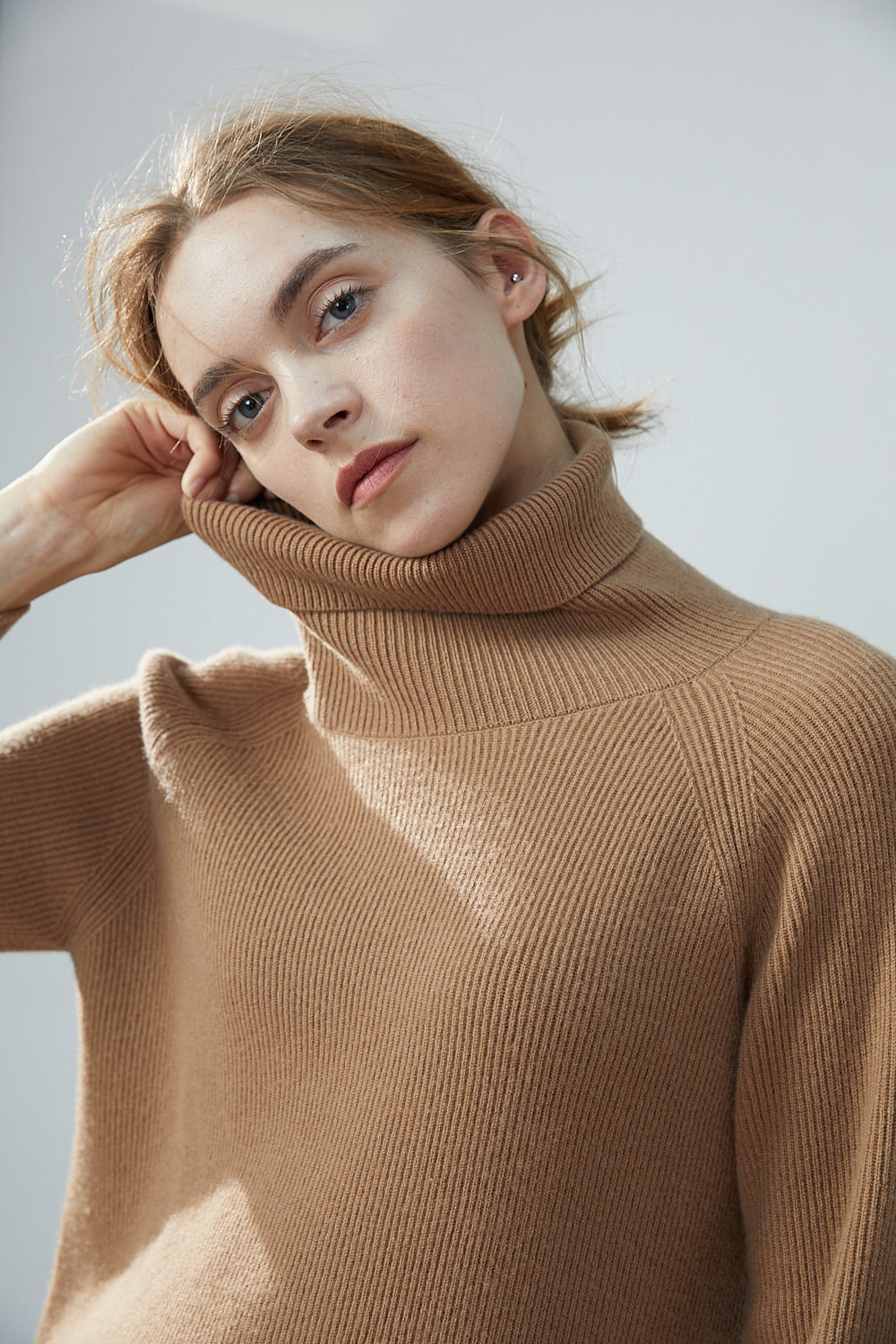 Turtle neck mid-length cashmere jumper / Cropped cashmere trousers