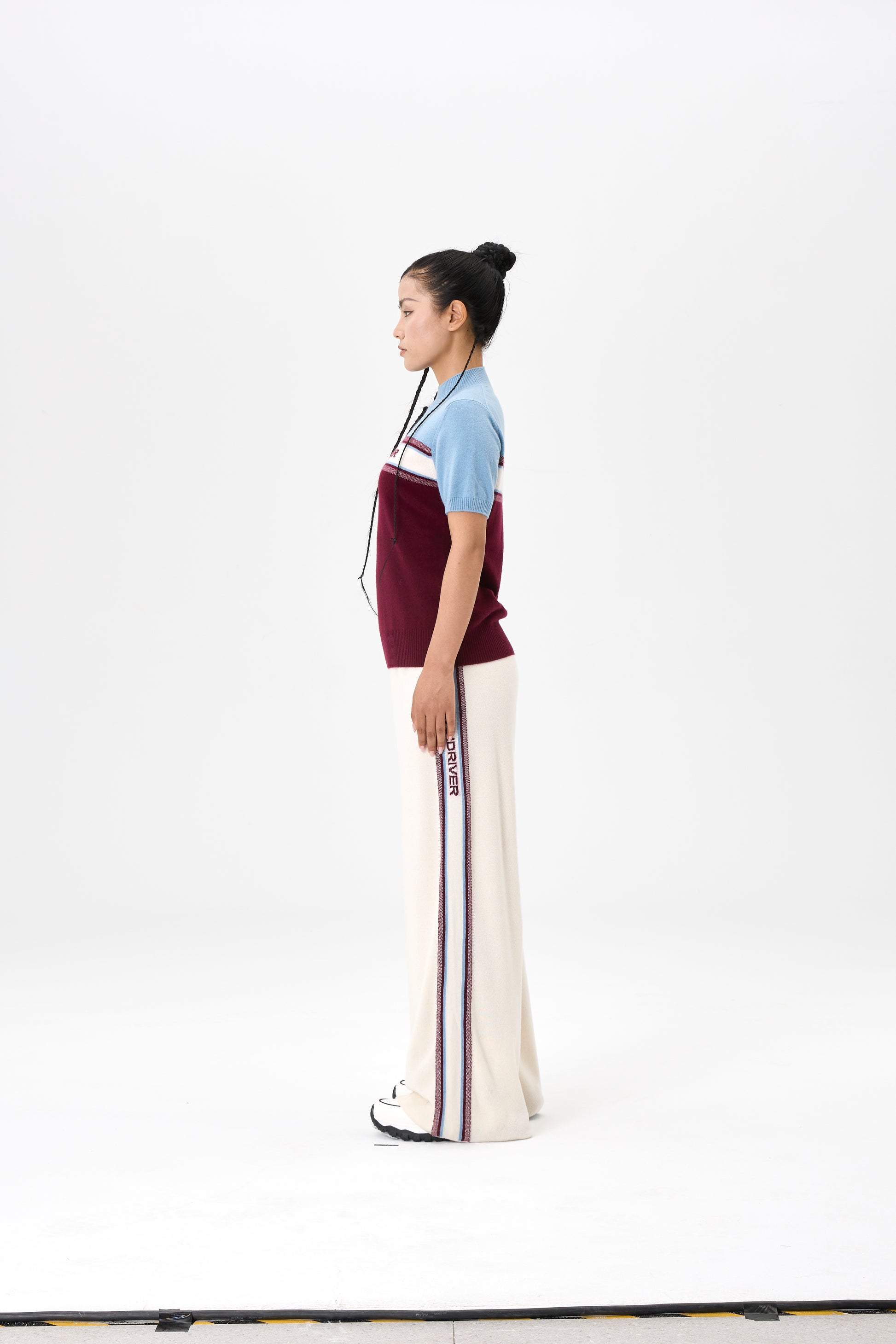 Craft: A double-needle bind-off craft applied in the edge of the round-neck collar satisfied the neck curve without any rolling.
