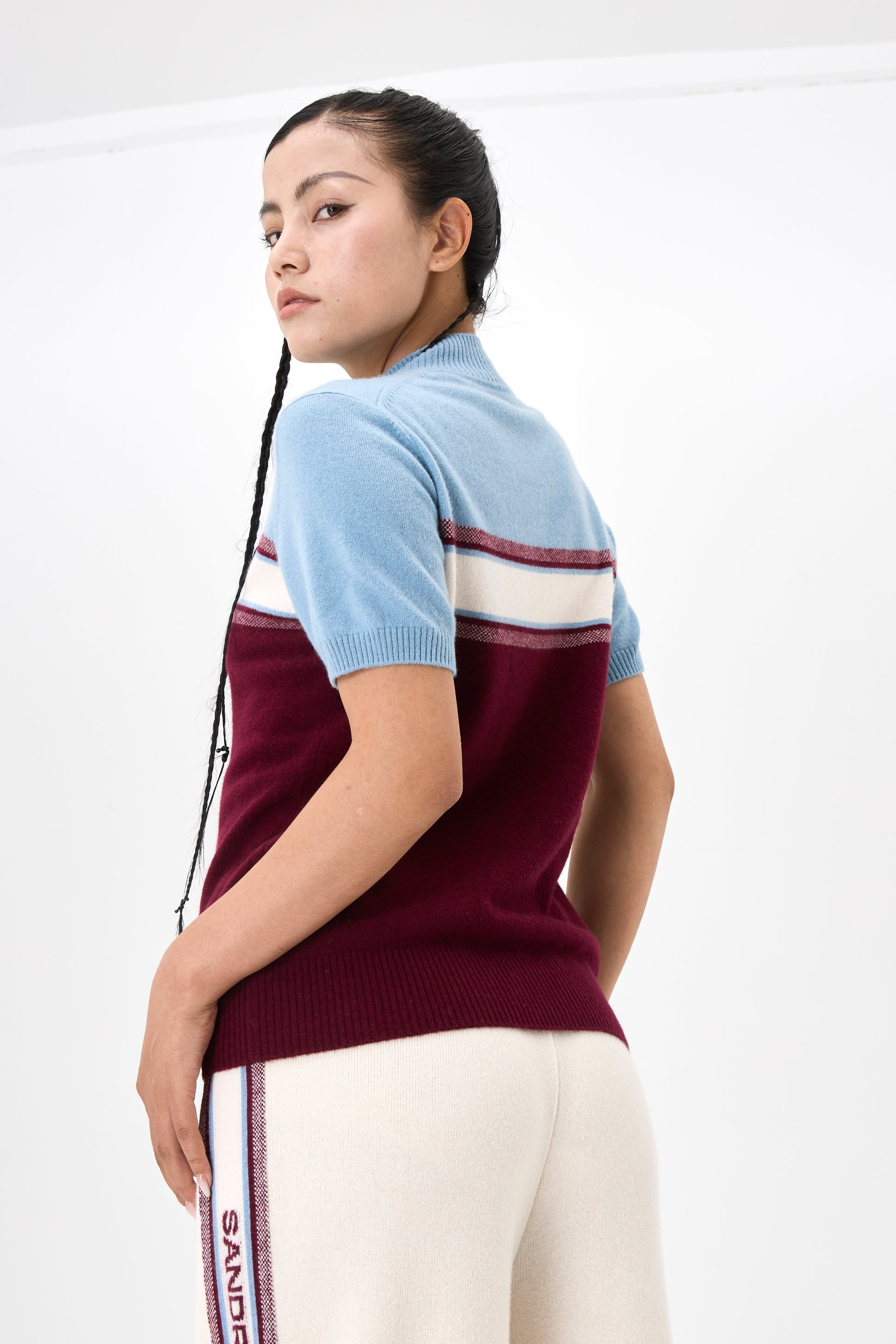 Plus, a meticulous rib bind-off craft applied in short sleeve cuff embraces the arm with coordinated stretch and clean seam.