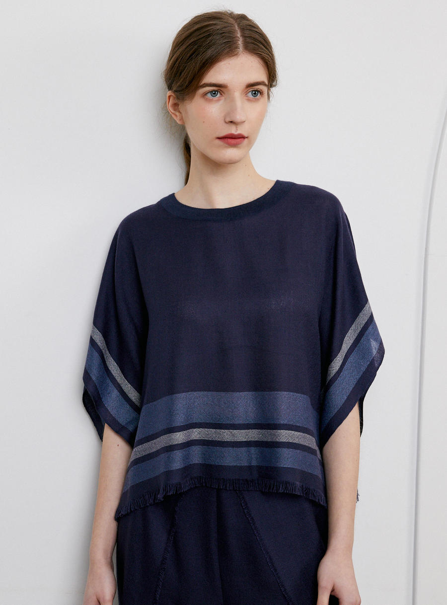 Ultra-thin boxy fit cashmere top with crew neck and short low set-in sleeves. The cashmere material is from Sandriver's own Inner Mongolian pasture. The tassels are all hand-sewn and very comfortable to wear. The unique craftsmanship of worsted cashmere is comfortable and refreshing even in summer.