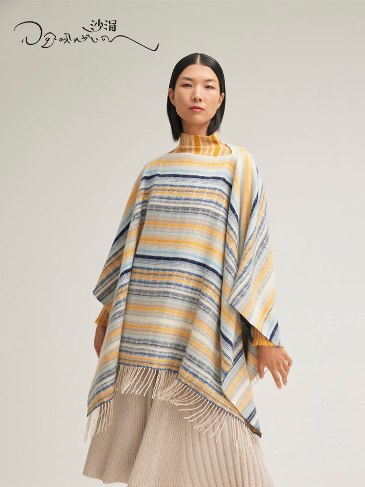 This hand woven cloak is made by cashmere and yak wool, with bright colors. An ethnic identity of Tibet culture is transformed into a single product.