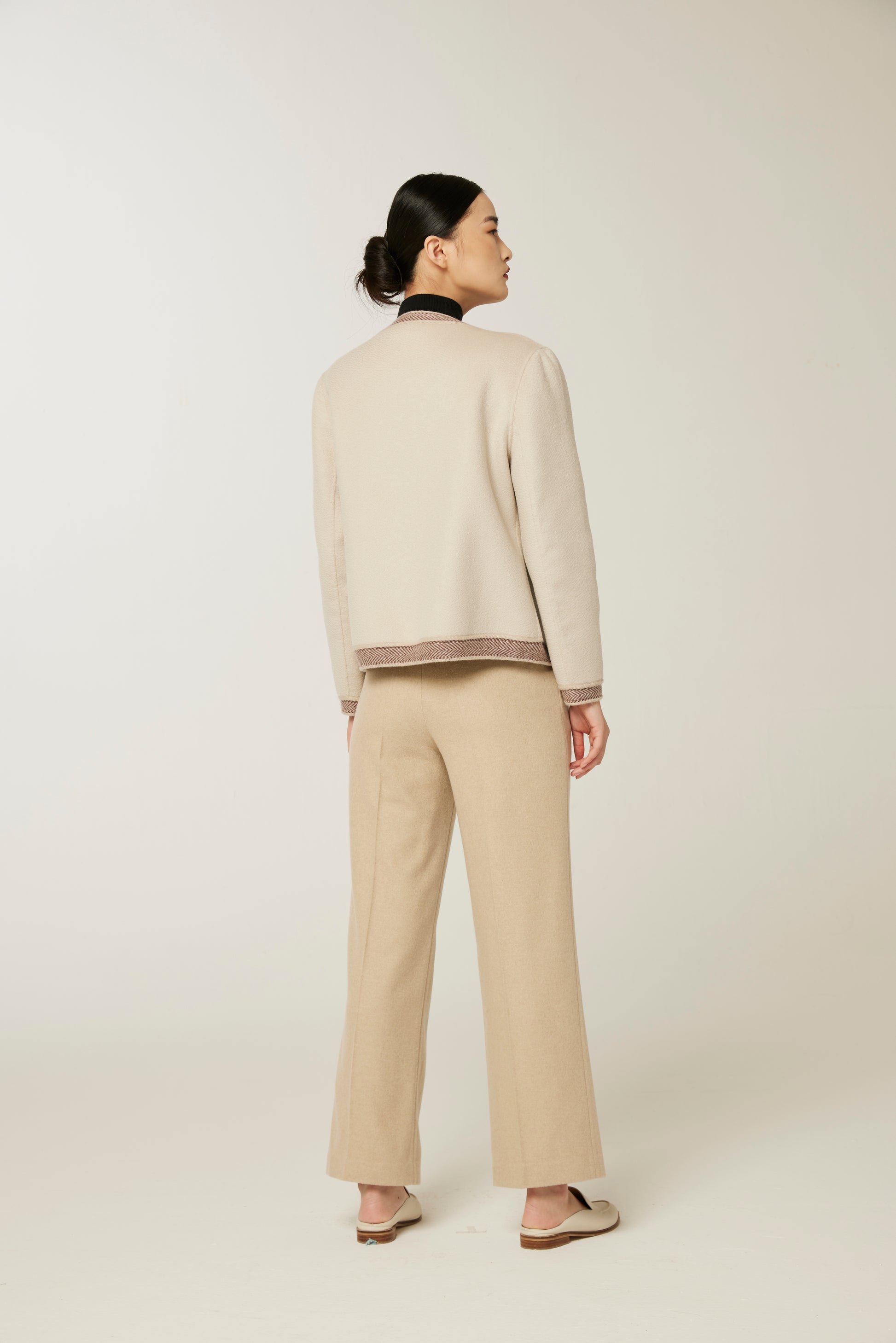 Pure cashmere straight-leg cropped trousers. High-waisted with slant pockets and two back pockets.
