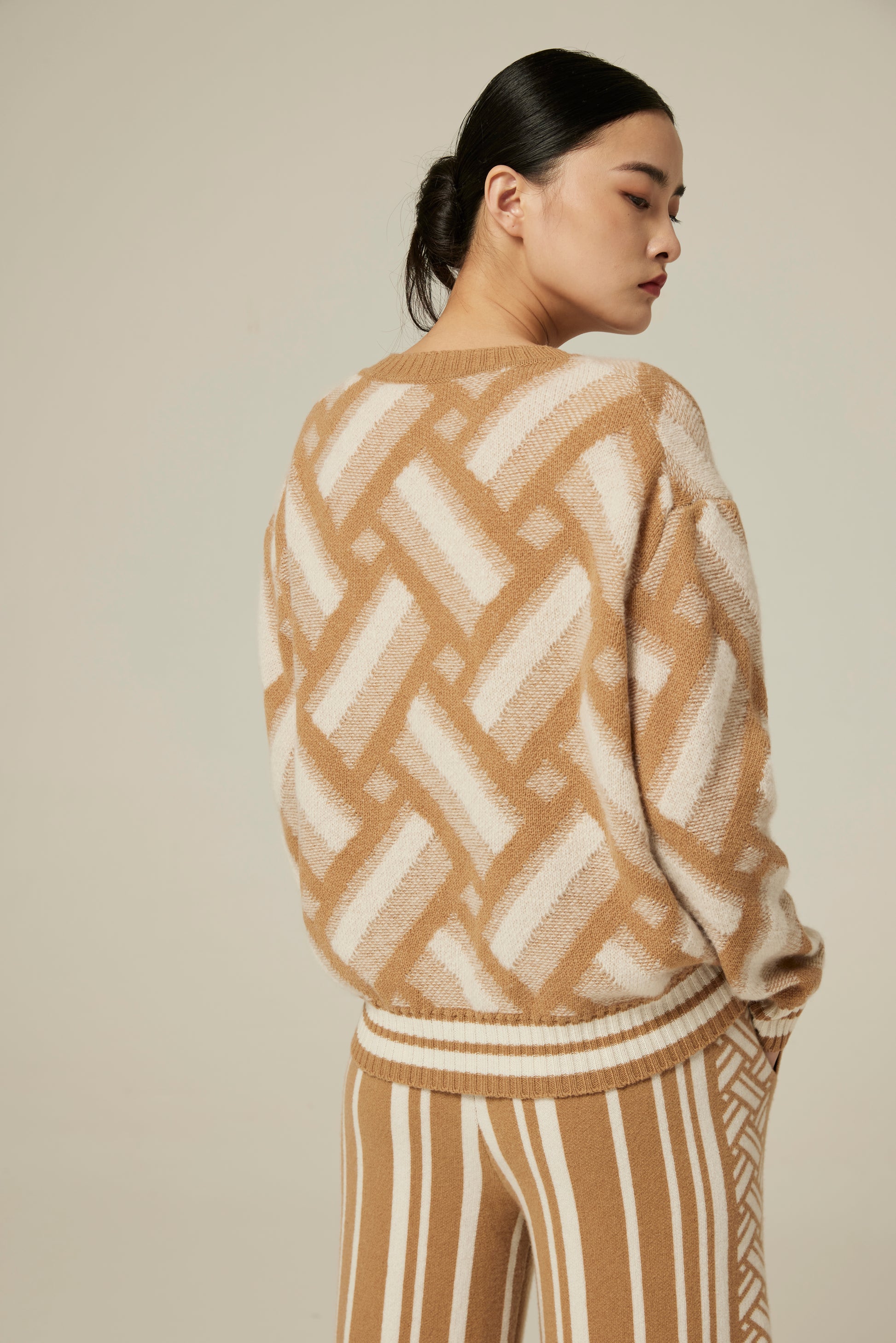 Knitted silk-cashmere jumper with a crew neckline jacquard with monogram pattern. Rib-knit hem and cuff. Regular fit.