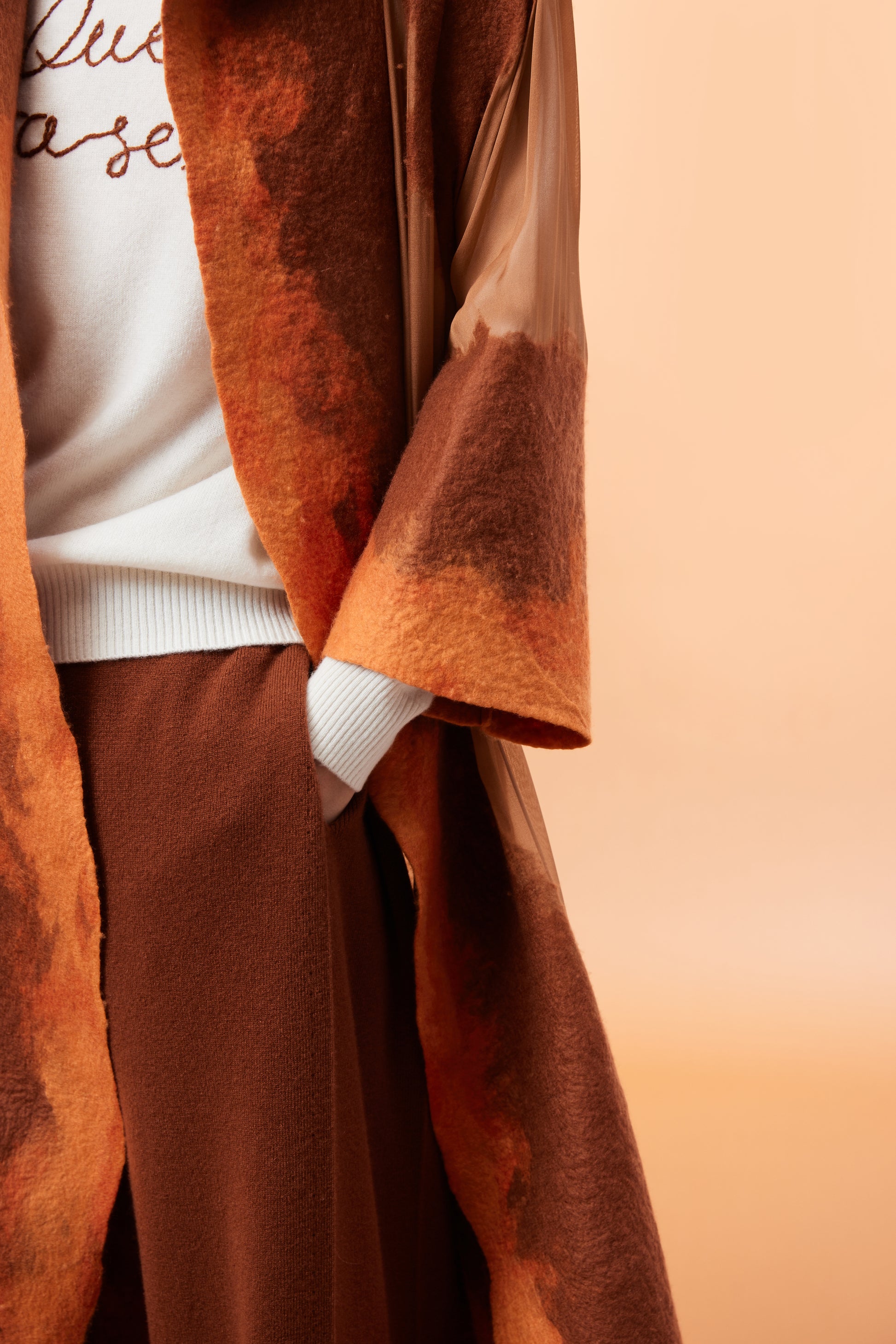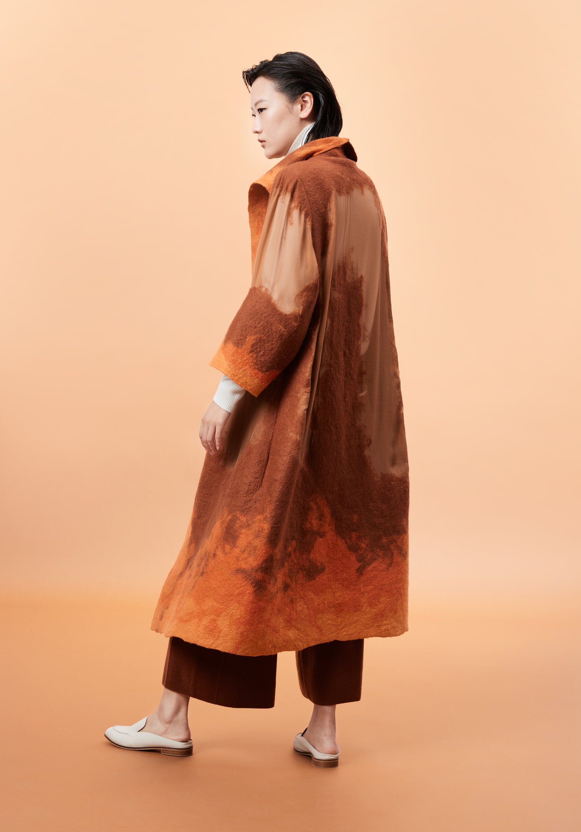 Unique handfracted felt coat joint with 100% cashmere and pure silk, an artwork by Mongolian traditional craftmanship.