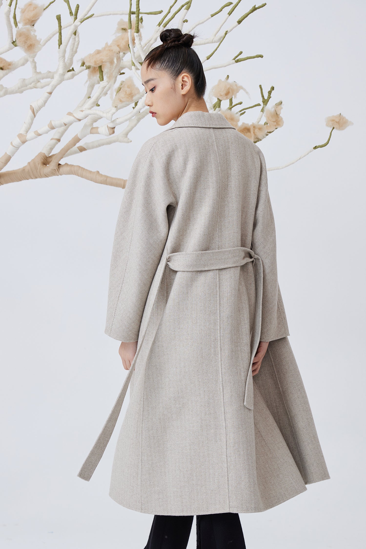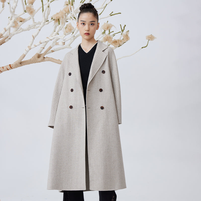 Imagine a coat that exudes timeless elegance and warmth. A double-breasted women's herringbone cashmere long coat is a perfect example. Its classic double-breasted style adds a touch of sophistication, while the herringbone pattern provides a textured, visual interest. The coat's long length offers ample coverage, and the luxurious cashmere fabric ensures it's incredibly soft and comfortable. The rich, natural tones of the herringbone pattern make it versatile enough to pair with a variety of outfits, from casual to formal.