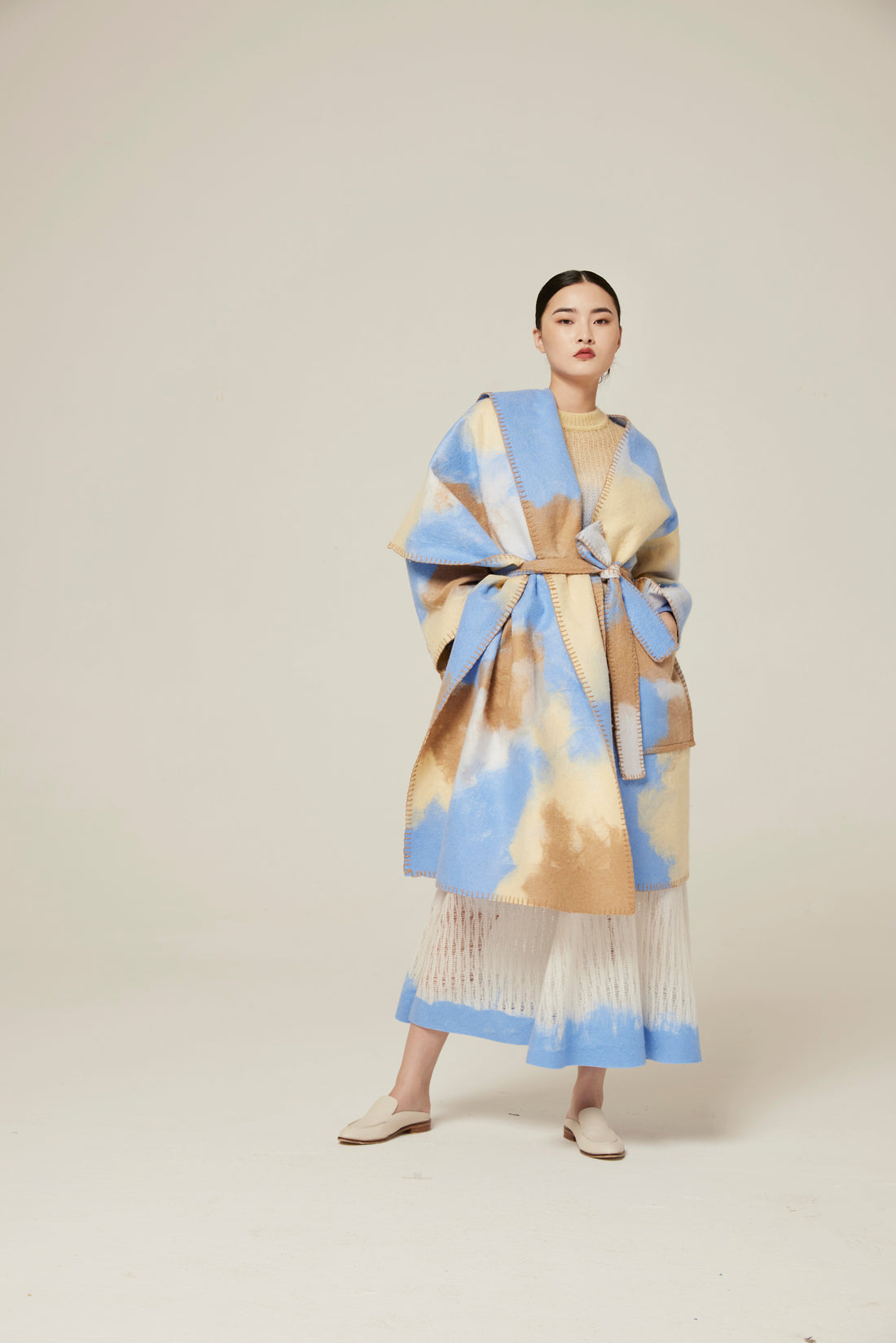 Unique handcrafted felt coat using 100% cashmere, hand-sewed hem and belted waist, an artwork by...