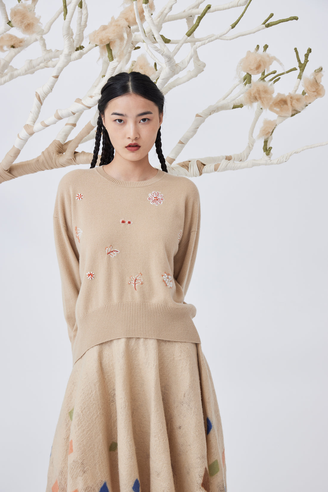 Women's knit cashmere hand-embroidered top