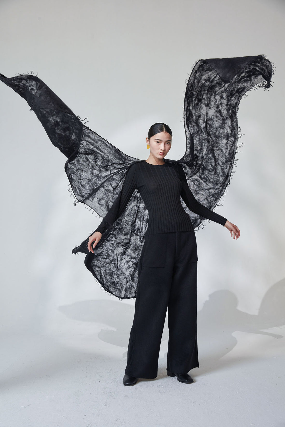 Handcrafted cashmere felt scarf innovated with silk, the unique piece provides everlasting warmth and comfort.ground:...