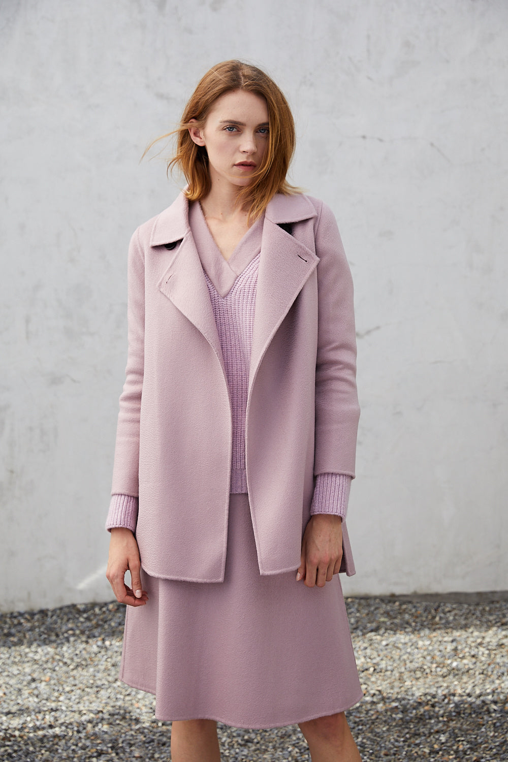 Single-breasted coat crafted from pure cashmere, featuring hand sewn seams, styled with asymmetry hem and side slits.