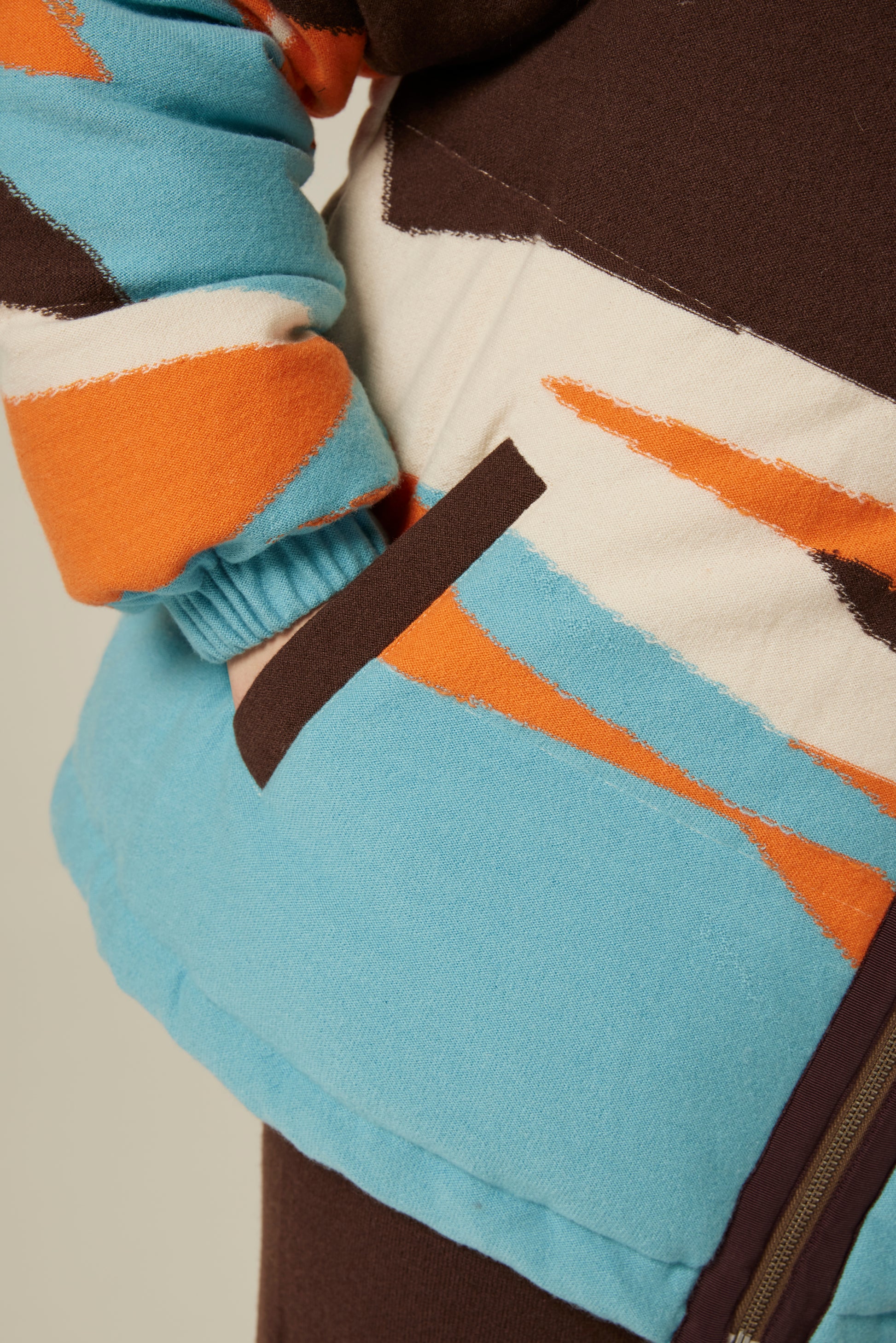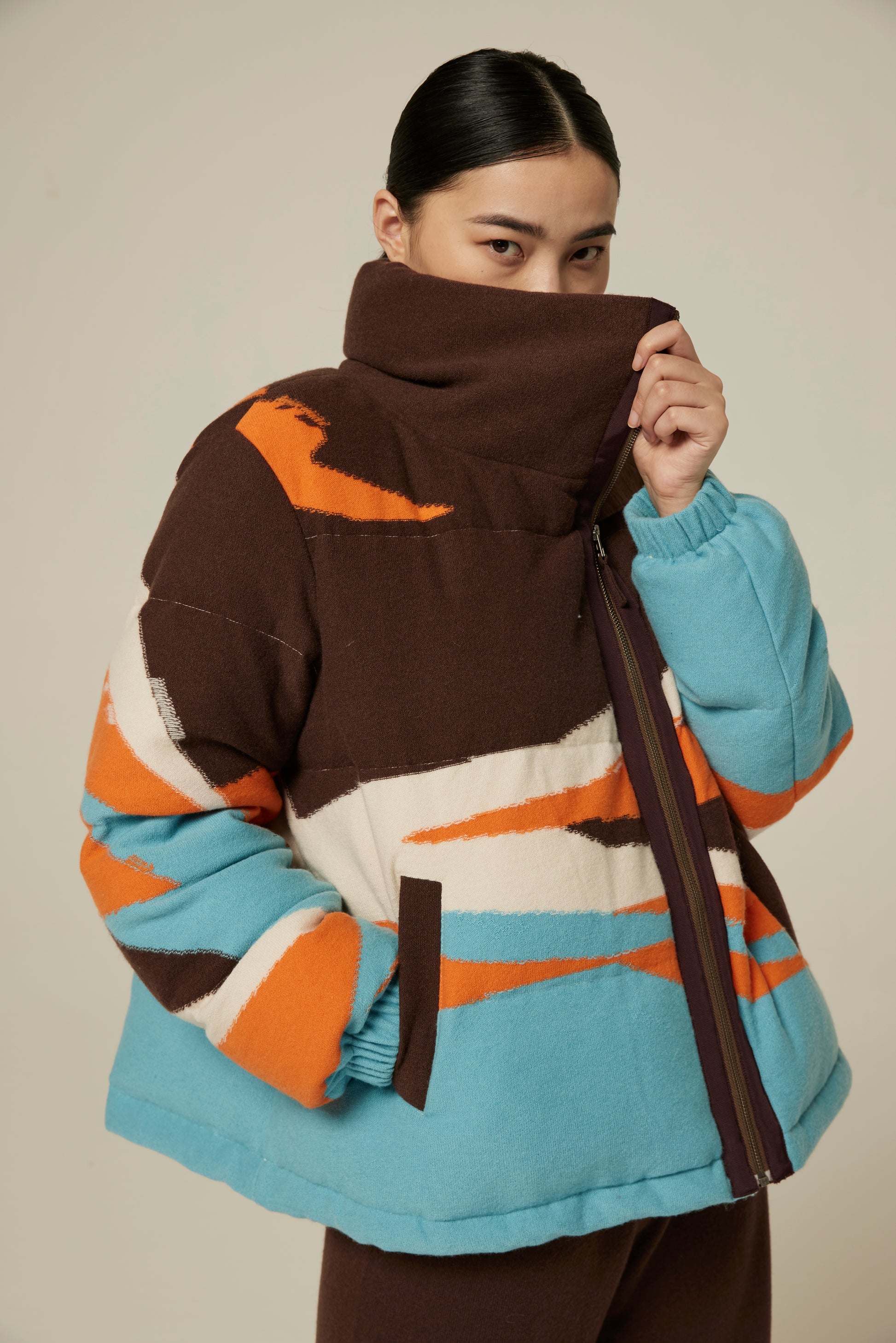 Pure cashmere covered puffer jacket, concealed front zip fastening, featuring elasticated hem. Logo knitted on the chest.