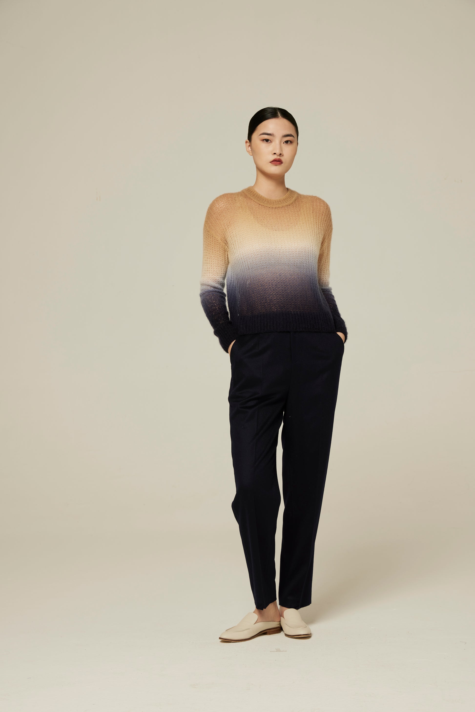 Pure cashmere straight-leg cropped trousers. High-waisted with slant pockets and two back pockets.