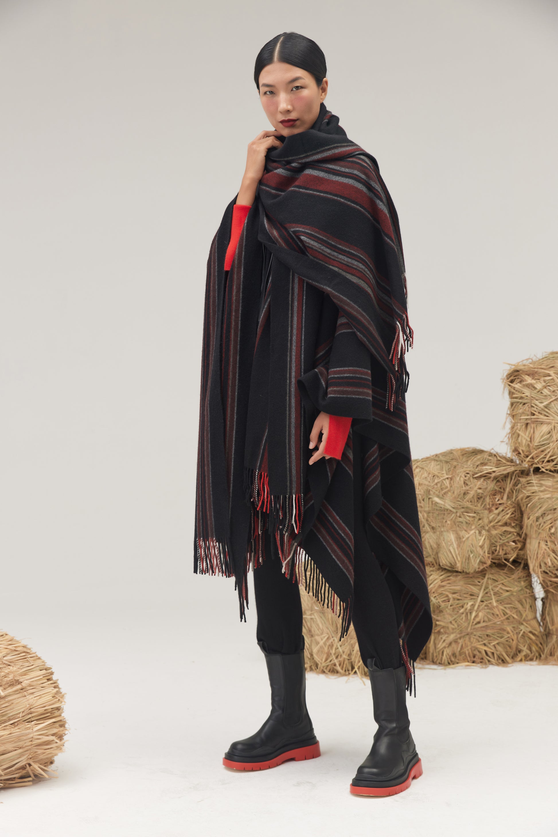 Inspired from the the Tibetan "Bundian"stripe pattern, hand woven ancient technique, 100% cashmere, an expression of serge in contemporary fashion.