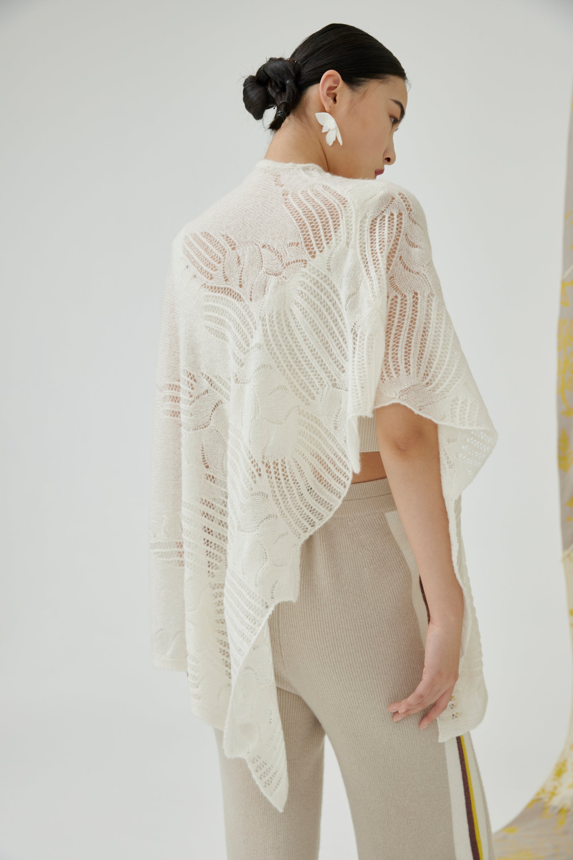 A light weight silk-cashmere cloak-type shawl, semi-sheer construction. Unique square-shape.